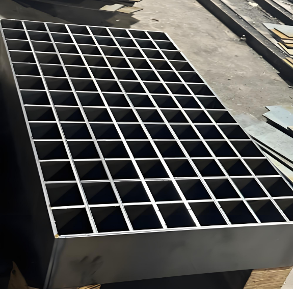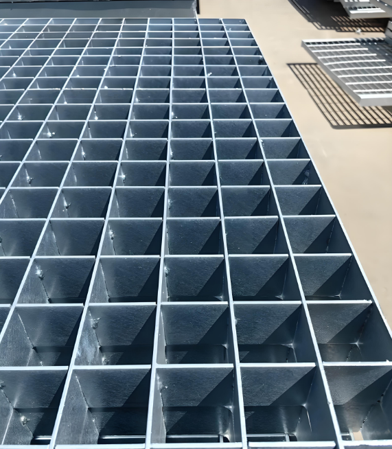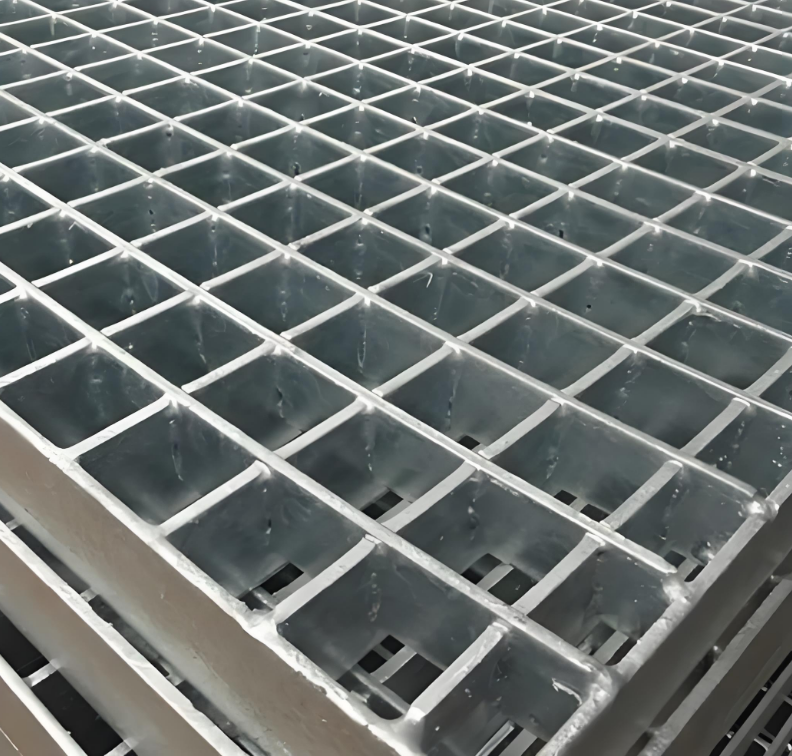 is a steel grating product manufactured from carbon steel flat bars, stainless steel, and other materials through processes such as slotting, interlocking, and welding. Based on the interlocking method, it can be categorized into four types: pressed type, heavy-duty type, integral type, and sunshade type. The pressed type employs cross-bar flat steel pressed and locked into shape, with a maximum processing height of 100mm; Heavy-duty types are formed under 1200-ton pressure, suitable for high-load applications; integral types feature groove depths of 1/2 the bar height; sunshade types are formed with 30° or 45° angled grooves. This product boasts secure weld points, a flat surface, corrosion resistance, and maintenance-free properties. The precise combination of load-bearing and cross bars achieves both lightweight construction and high load capacity. Surface treatments include galvanization, spray painting, and plastic dipping, enabling fabrication into components such as drainage grates, stair treads, and pool covers. Primarily used in civil buildings, subway platforms, and power plant load-bearing platforms for ceiling decoration, walkway gratings, and ventilation window covers.